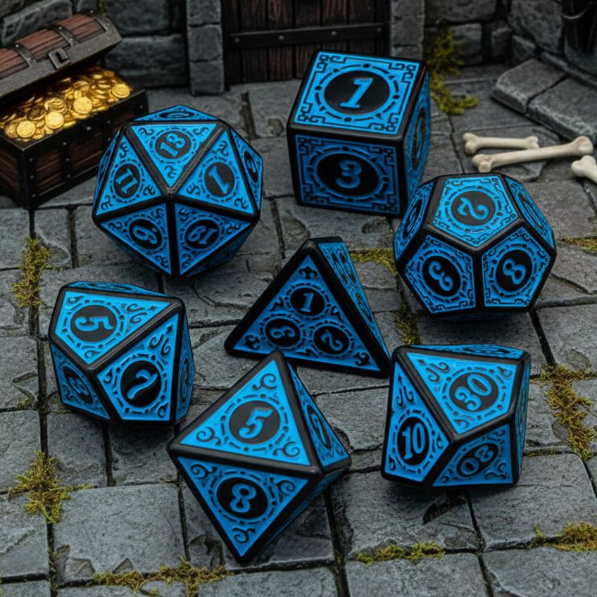 • Adventure-Ready 7-Piece Polyhedral Dice Set: Includes D4, D6, D8, D10, D12, D20, and D100. Each die features design elements inspired by characters, classes, and settings, bringing your tabletop world to life with every roll.