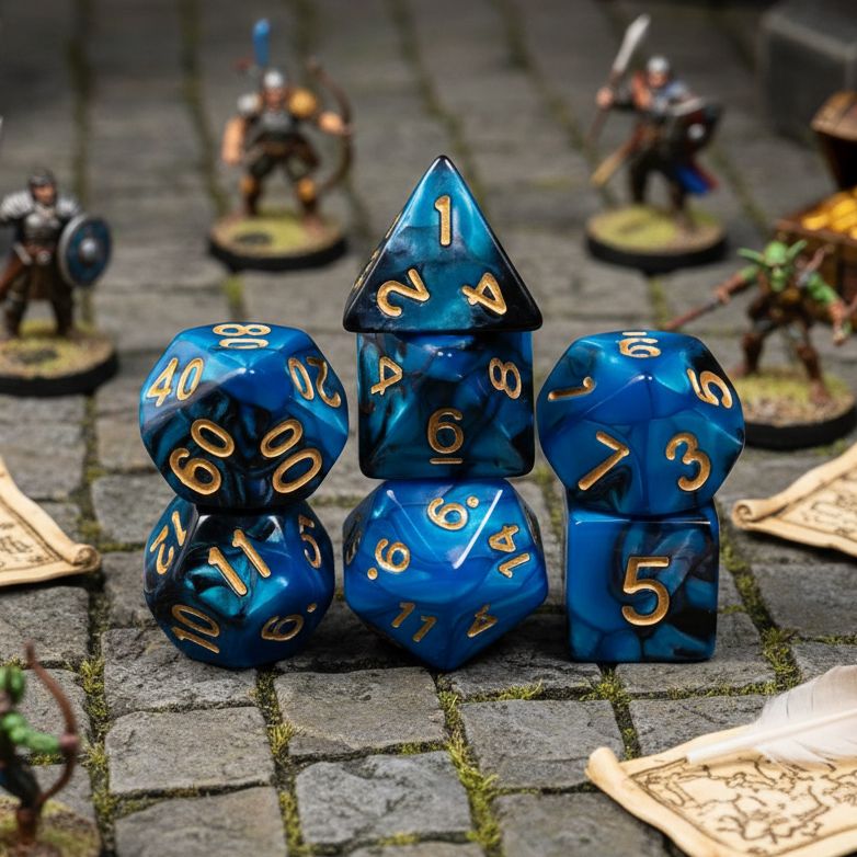 - Adventure-Ready 7-Piece Polyhedral Dice Set: Includes D4, D6, D8, D10, D12, D20, and D100. Each die features design elements inspired by characters, classes, and settings, bringing your tabletop world to life with every roll.