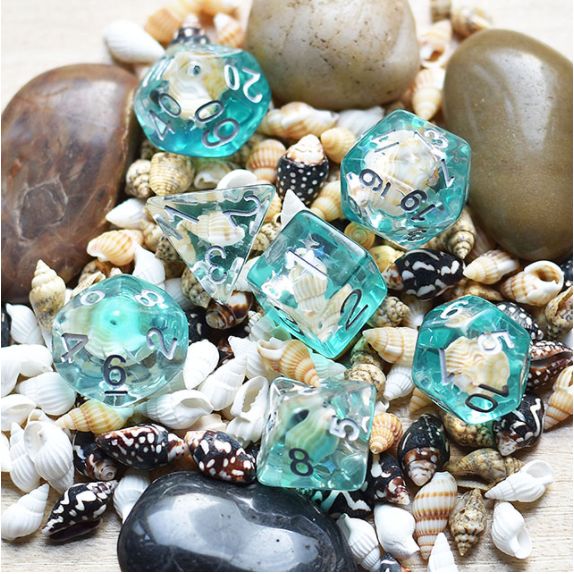 - Conch Polyhedral Dice Set. The set includes 7 pieces: D4, D6, D8, D10, D100, D12, and D20. These polyhedral dice are made out of durable acrylic material.