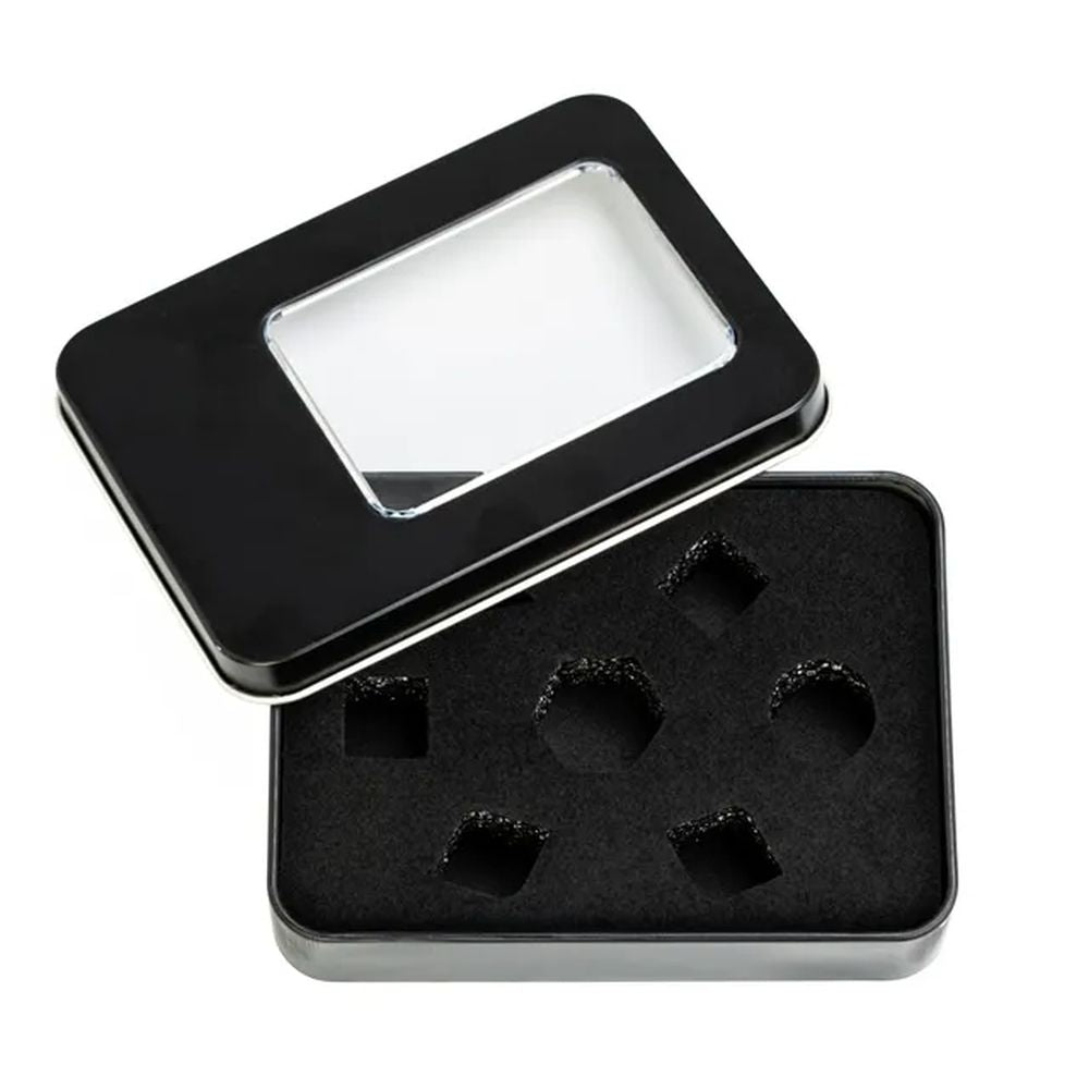 - Sleek Black Metal Dice Case: Stores a complete 7-piece polyhedral dice set, this minimalist all-black metal dice box delivers a modern, understated look that fits any tabletop setup.